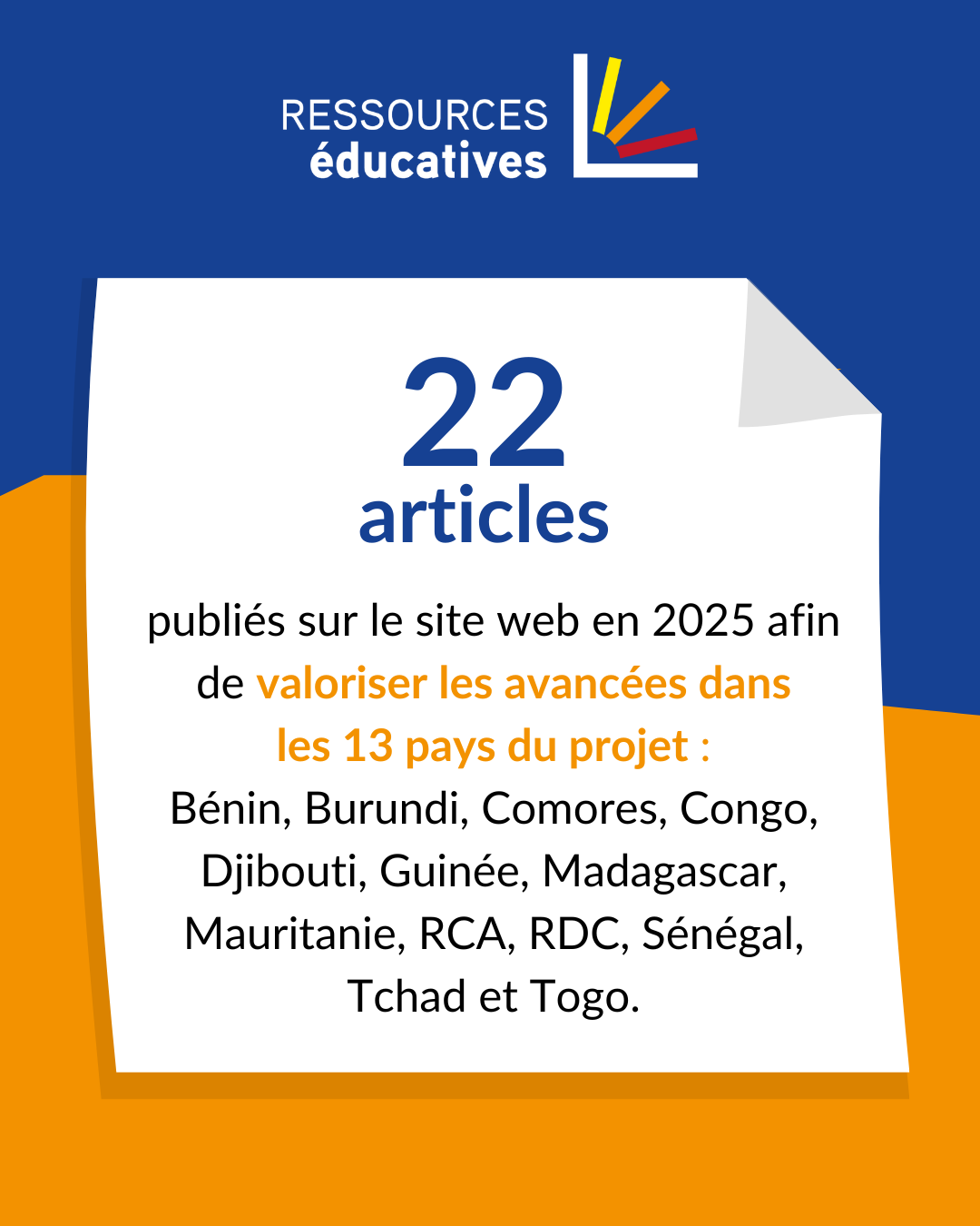 Parallèlement, 22 articles ont été publiés pour valoriser les avancées, initiatives et expériences mises en œuvre dans les 13 pays du projet (Bénin, Burundi, Comores, Congo, Djibouti, Guinée, Madagascar, Mauritanie, République centrafricaine, République démocratique du Congo, Sénégal, Tchad et Togo) contribuant ainsi à documenter les dynamiques nationales et à favoriser le partage d’expériences.
